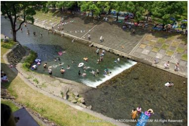 天然流水プール、ウォータースライダー、川遊び、史跡(清水磨崖仏)探訪、鯉の餌やり。