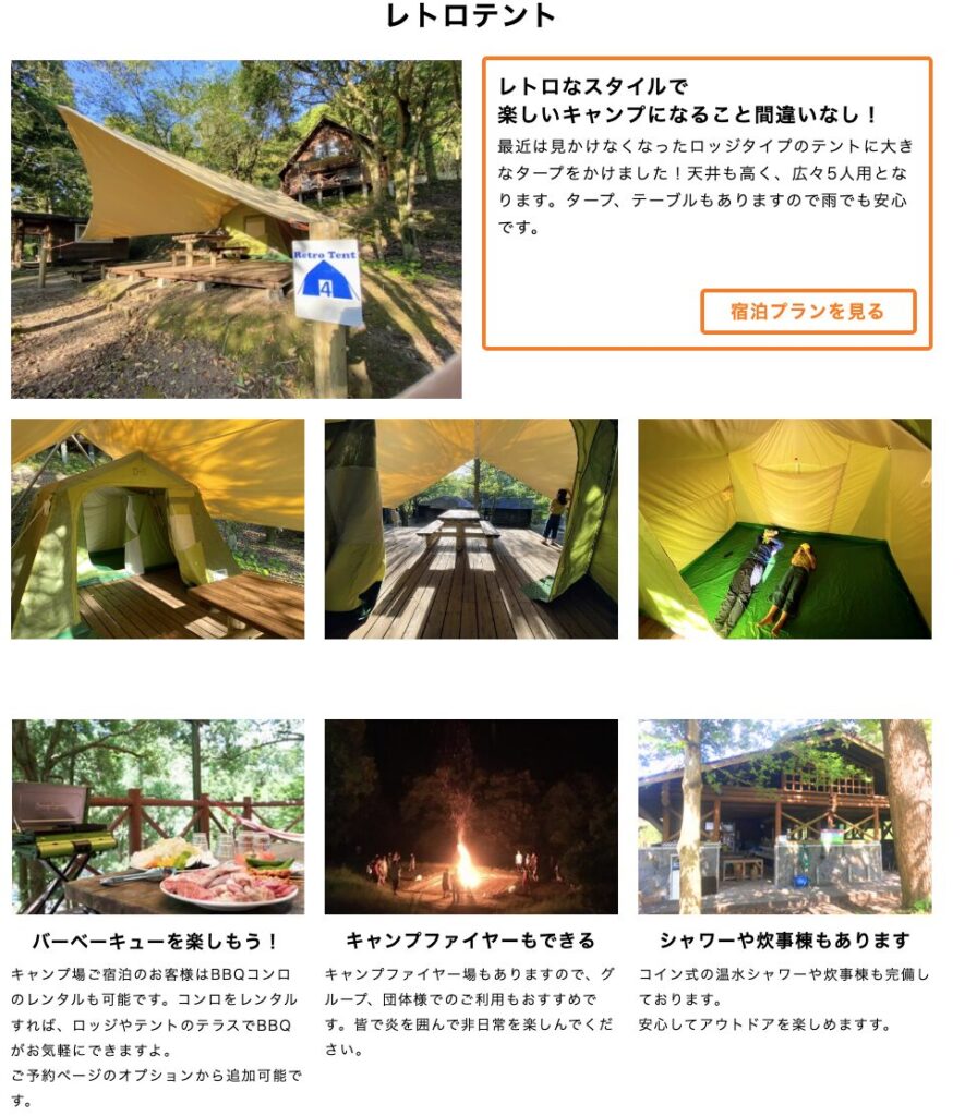 レトロテント | 7,200円~ | 5名定員 | なし | なし | 不可 |