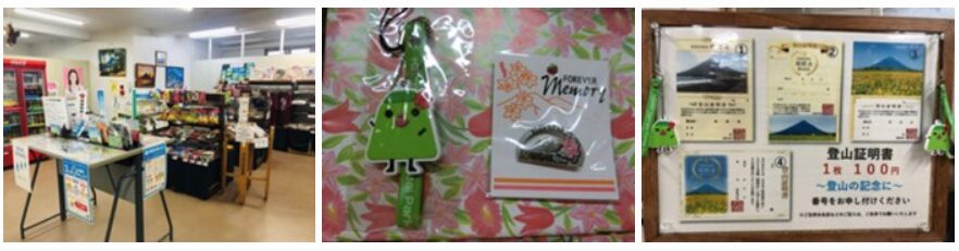 薪、炭、ガスカートリッジ、お菓子、飲料、キャンプ小物、開聞岳の登頂証明書や山バッジなどを販売。