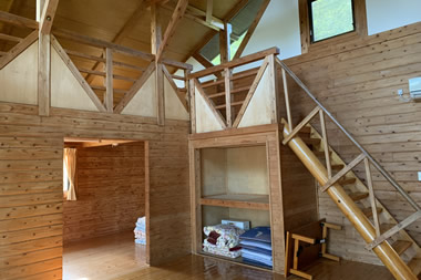 定員5名用と10名用の2種類があり、全棟にキッチン、バス、トイレ、エアコンが完備されています。手軽に快適なアウトドアを楽しみたいファミリーやグループに最適です。