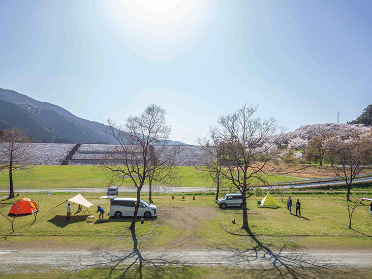 隣接する「フォレストアドベンチャー・美里」では日本最長のジップスライドが楽しめ、場内ではカヤックやSUP体験も可能。アクティブ派のファミリーやグループにぴったりの、キャンプ場です。緑川ダム湖畔に位置し、設備が整ったロッジからリーズナブルなフリーサイトまであり、初心者からベテランまで楽しめます。