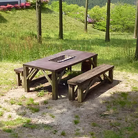 直火は指定のファイヤーサイトのみ可。その他のサイトでは必ず焚き火台と焚き火シートを使用。